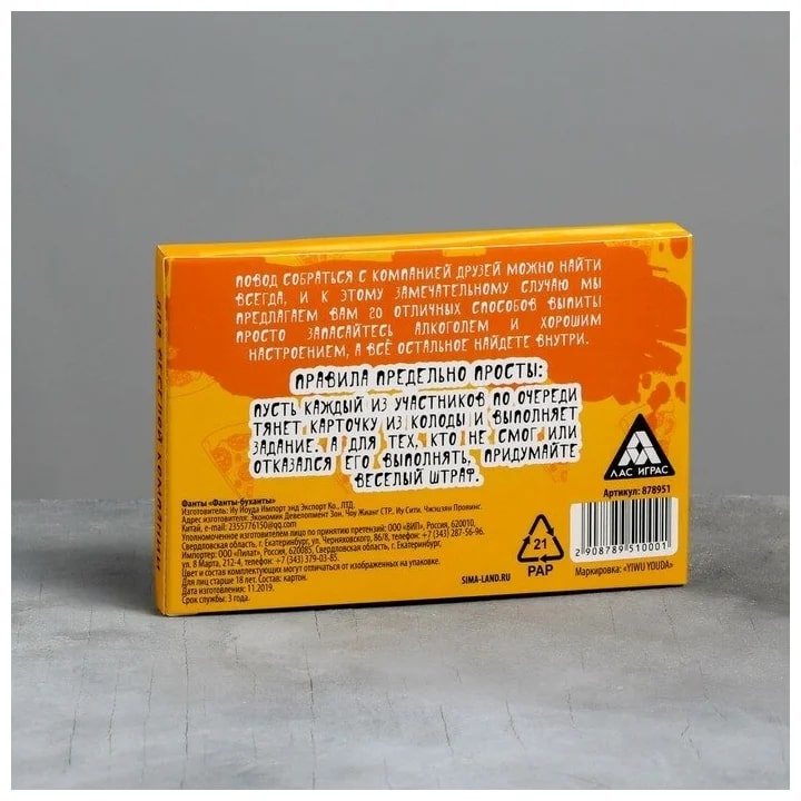 Купить игра для компании "фанты буханты" 20 карт от 100 руб. с доставкой до пункта выдачи в Мглине. Интернет магазин ДекаМаркет. Оплата при получении.